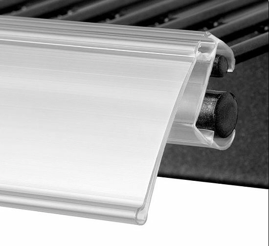 scharnierbar, mit Adaptermöglichkeit, für Etiketteneinschub 26 mm, für Wanzl- und Wire-Tec-Drahtböden mit zwei horizontalen Drahtlinien, Farbe: transparent